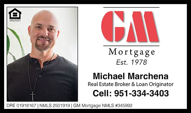 If you’re in Hemet, California, and need a lender, Michael Marchena is here to help. As a seasoned lender and real estate Broker, Michael offers comprehensive home loan and refinance services tailored to meet your needs. Whether you are buying your first home, refinancing an existing mortgage, or exploring financing options for an investment property, Michael provides expert guidance and personalized solutions to ensure a smooth and successful lending experience.